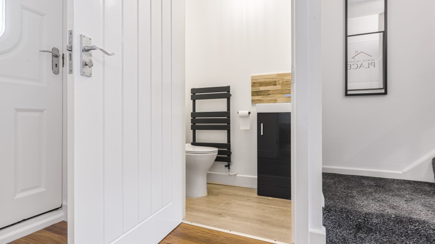 Step outside to the private garden, a lovely space to enjoy fresh air, morning coffee or a quiet moment in the evening. With driveway parking for two cars, it is especially suitable for contractors or guests travelling with vehicles.